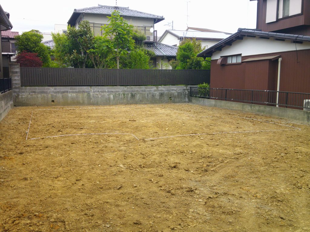 さて、ここから基礎工事が始まりますが、まずは地縄張りからです。