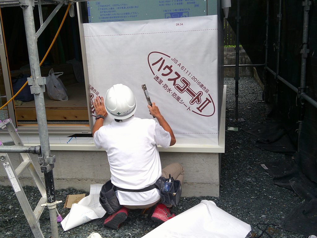 昔はルーフィングシートを張っていたのですが、いつの間にかこの通湿紙の白いものに取って代わられました。