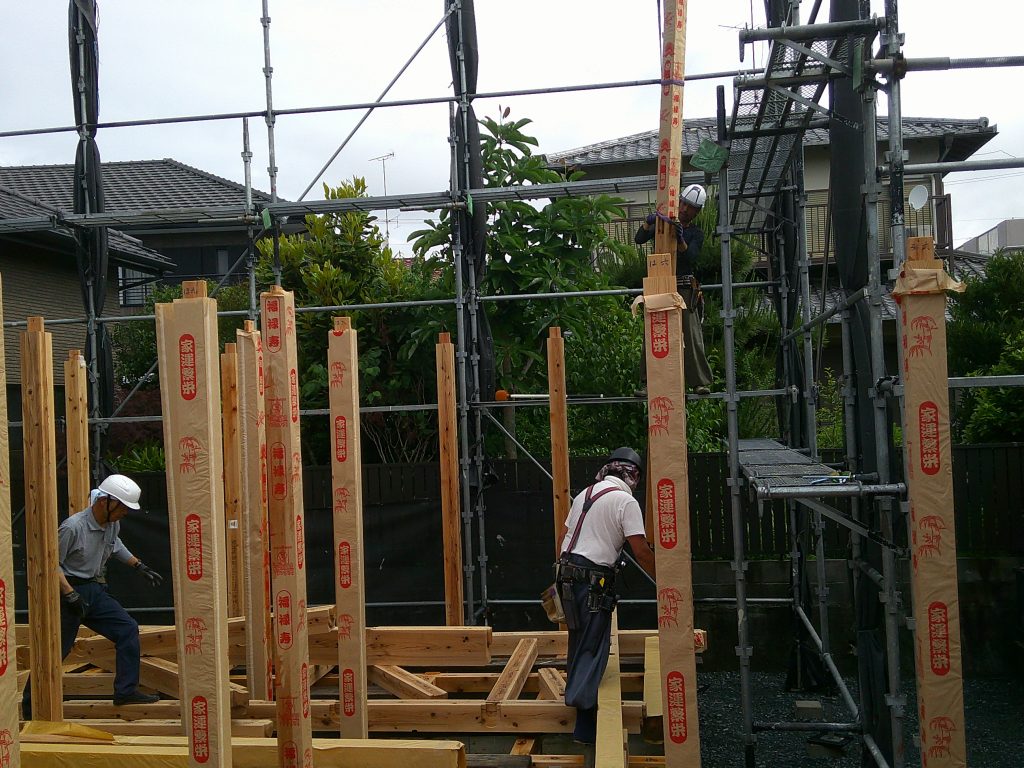 プレカットされていますので、すべての柱が建つ位置と向きも決まっています。