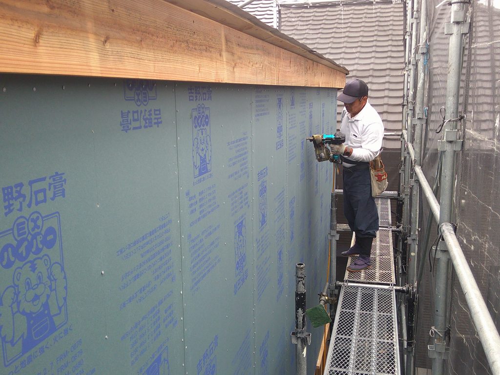 と言ってはいるけれど、写真は現場でのPB系の構造用ボードです。
