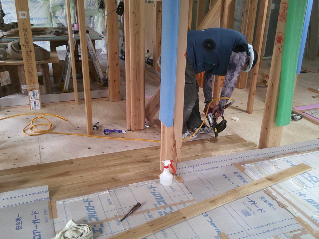 一般的に輸入材は過乾燥のものが多いので、特に無理やりかち込まない事が重要です。