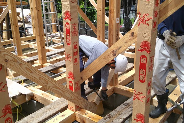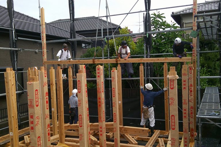 ニュース 2025年10月21日 / 最終更新日 : 2025年10月21日 coder ニュース 上棟風景-3 開催場所: 上棟風景 柱の立て起こしをチェックしたら、同時に仮筋交いを施工していきます。 こ […] 2025.10.21