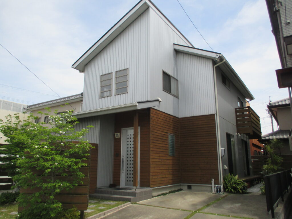 外観がガリバリウム鋼板と白木のモダンなスタイルの「木の家」です。