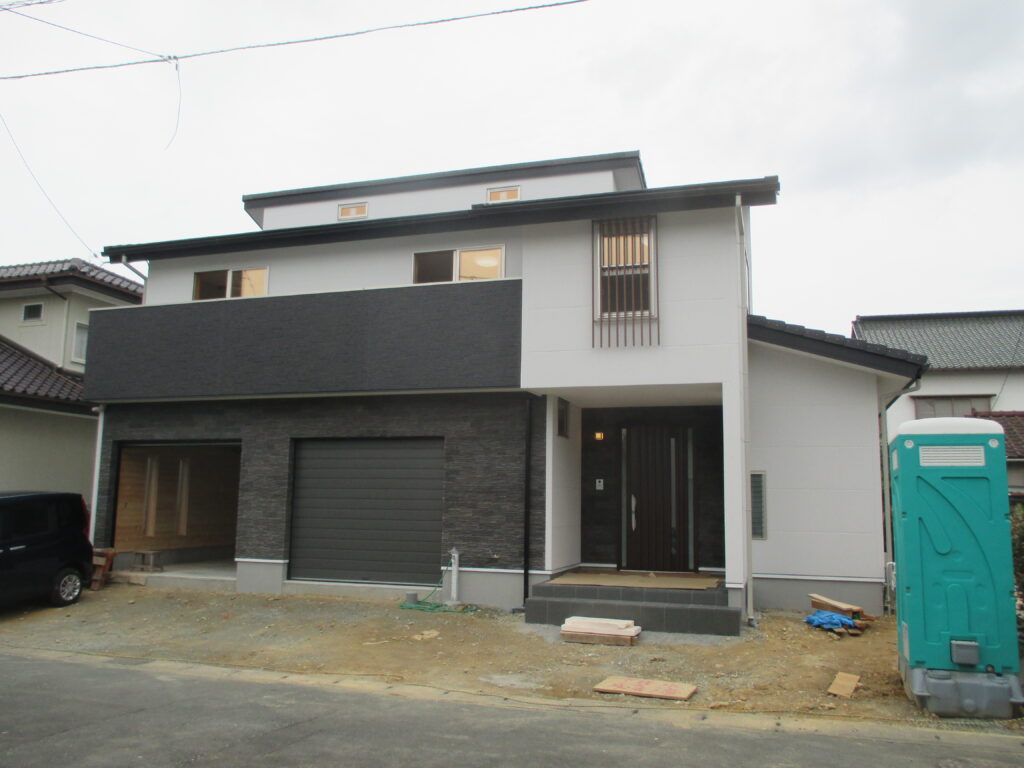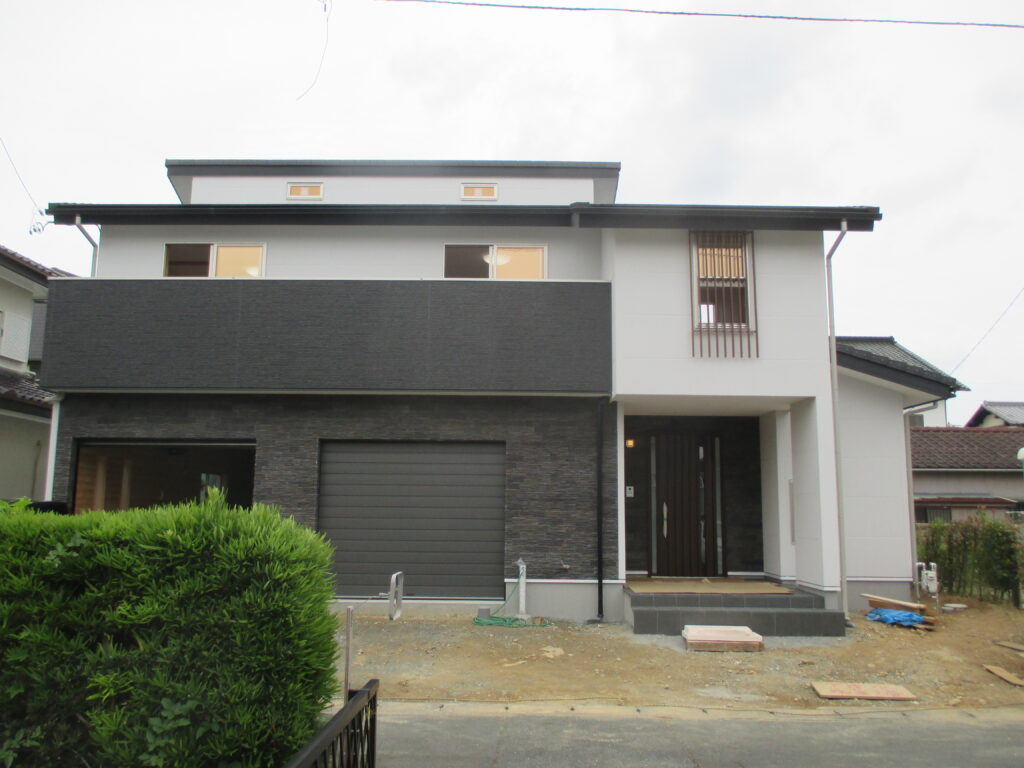 車3台分のインナーガレージが最大の特徴です。屋根は平瓦で外壁はALC版です。浴室も在来工法で外部の坪庭を見ながら入る旅館のような和風のお風呂です。