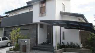 外壁が化粧のサイデイングではなく総吹付仕上げのALC版です。一部に張っているブリックとのコントラストが特徴です。